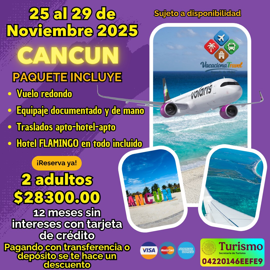 Del 25 al 29 de noviembre 2025 vive unas vacaciones espectaculares con Vacaciona Travel